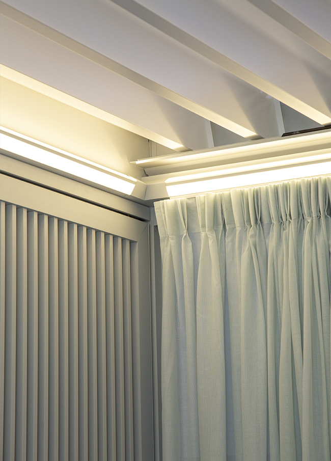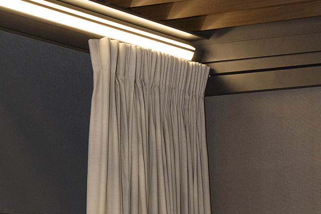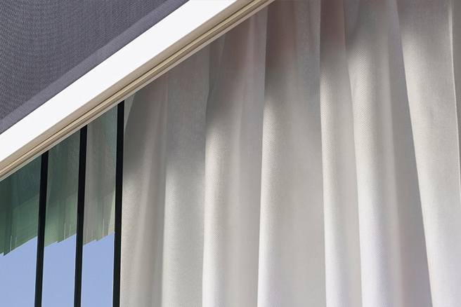 Vai vēlaties savai pergolai piešķirt mājīgu izskatu? Aizkari tūlīteji piešķir jauku noskaņu! Varat tos kombinēt ar Fixscreen žalūziju sānu elementiem un/vai stikla bīdāmajām sienām, lai izveidotu drošu, slēgtu pergolu. Romantikas cienītāji var aprīkot savu pergolu ar aizkariem un pat uzlabot noskaņu ar UpDown LED apgaismojumu.