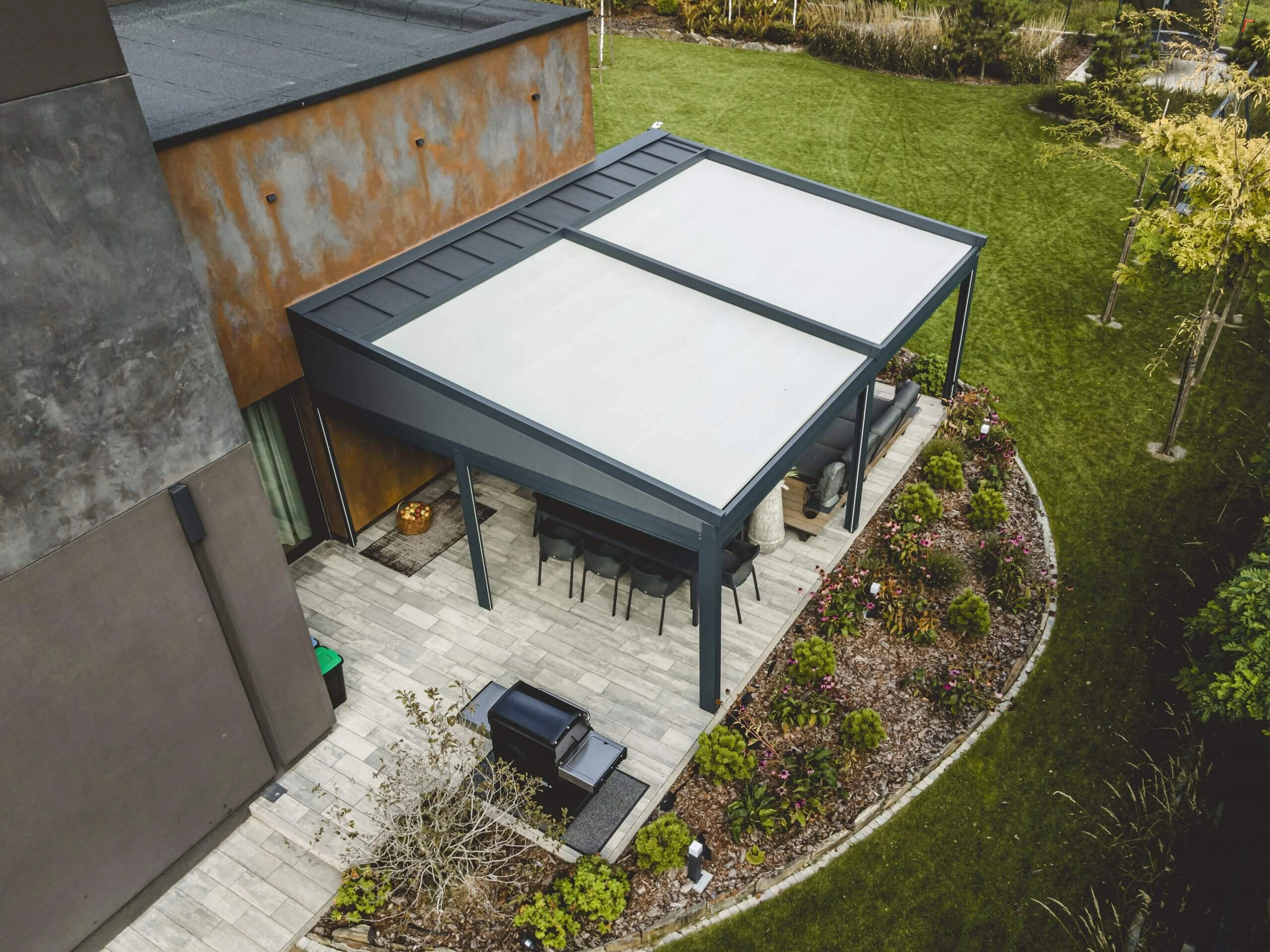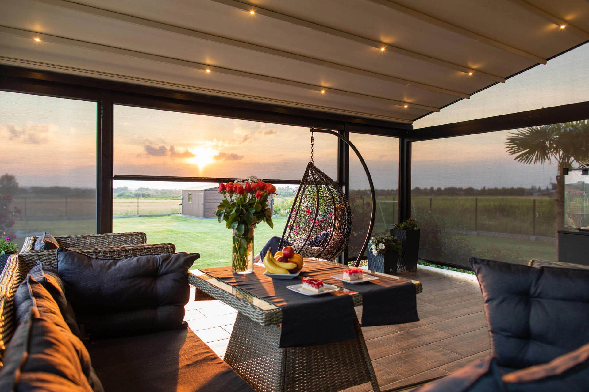 Tarasola Elegancy ir stilīga auduma terases jumta seguma sistēma, kas apvieno vienkāršību un greznību. Pateicoties modernajiem tehnoloģiskajiem risinājumiem, kas ieviesti tās struktūrā, tas ir vienkāršs un praktisks risinājums, kas var saplūst ar lielāko daļu arhitektūras stilu. Alumīnija konstrukcija ir aprīkota ar izvelkamo trīsslāņu TechProtect auduma jumta segumu, kas ir nedegošs, UV un ūdens izturīgs. Ievilktais audums ir pārklāts un aizsargāts ar alumīnija vizieri