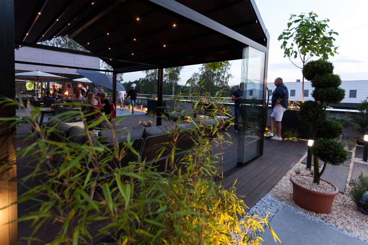 To var uzlabot ar plašu aprīkojuma klāstu no mūsu kataloga, pateicoties kuriem ir iespējams panākt neatkārtojamu efektu. Bēniņu terases nojume, kā arī lielākā daļa uzņēmuma Tarasola ražoto konstrukciju ir aprīkojamas ar prožektoriem, starojuma sildītājiem, stiklojumu un žalūzijām. To var krāsot jūsu izvēlētā krāsā un bagātināt ar pulvera pārklājumu ar koka graudu krāsojumu un Loft augšanas gredzeniem. Rezultātā tas var kļūt par ainavas sastāvdaļu. Tas pārsteidzoši apvieno tradīcijas ar mūsdienīgumu, jo tas ir pieejams tikai brīvi stāvošā variantā.