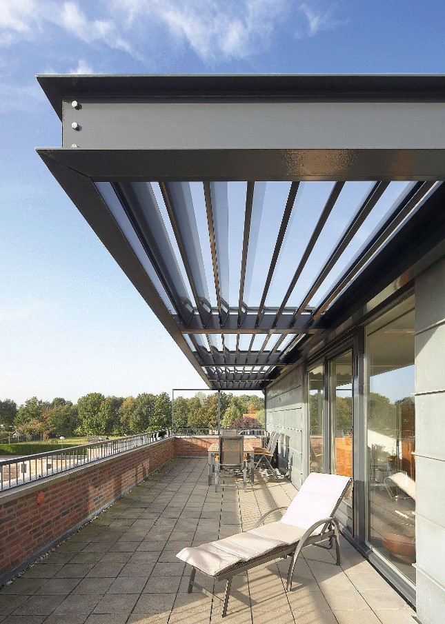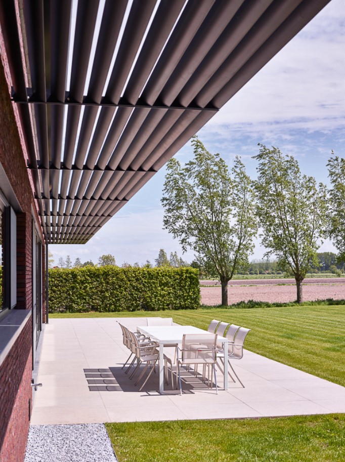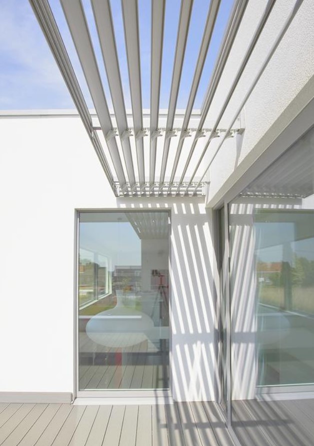 Saules aizsegs ēkas ārējā pusē ar arhitektonisku pievienoto vērtību. Lāpstiņu orientācija bloķē saules gaismu, kad saule karstās dienās ir visaugstākā pozīcijā. Rezultātā iekštelpu temperatūra saglabājas kontrolējama, bet jūs optimāli izbaudāt dienas gaismu un skatu uz ārpusi.