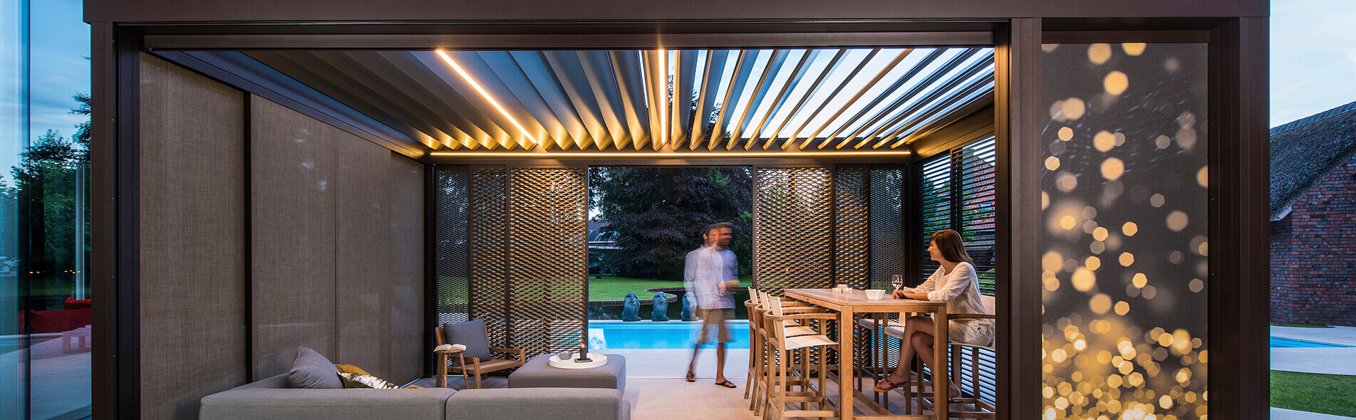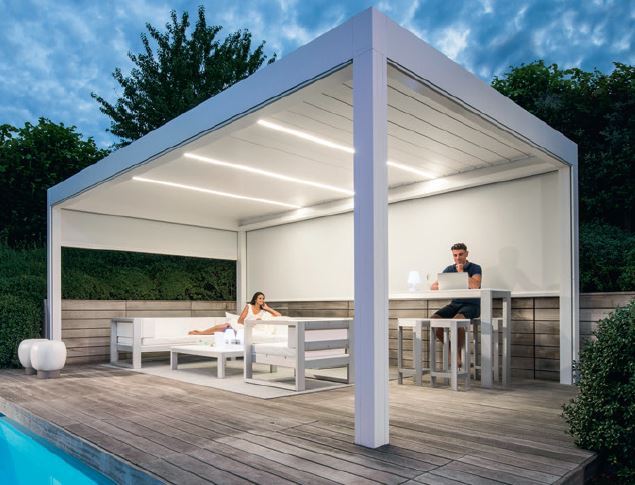 Lineo LED apgaismo Jūs ar spilgtu gaismu no augšas. Šo pergolas LED apgaismojumu var iestrādāt vienā vai vairākās jumta lamelēs jebkurā pergolā ar žalūziju jumtu: Camargue, Algarve vai Aero. Izvēlieties silti baltu gaismu (3000 K), lai radītu patīkami mājīgu atmosfēru, vai izvēlieties tīru, funkcionālu baltu gaismu (5000 K). Otrs variants ir ideāli piemērots ikvienam, kurš vēlas pavadīt laiku pergolā naktī, lai lasītu aizraujošu grāmatu.