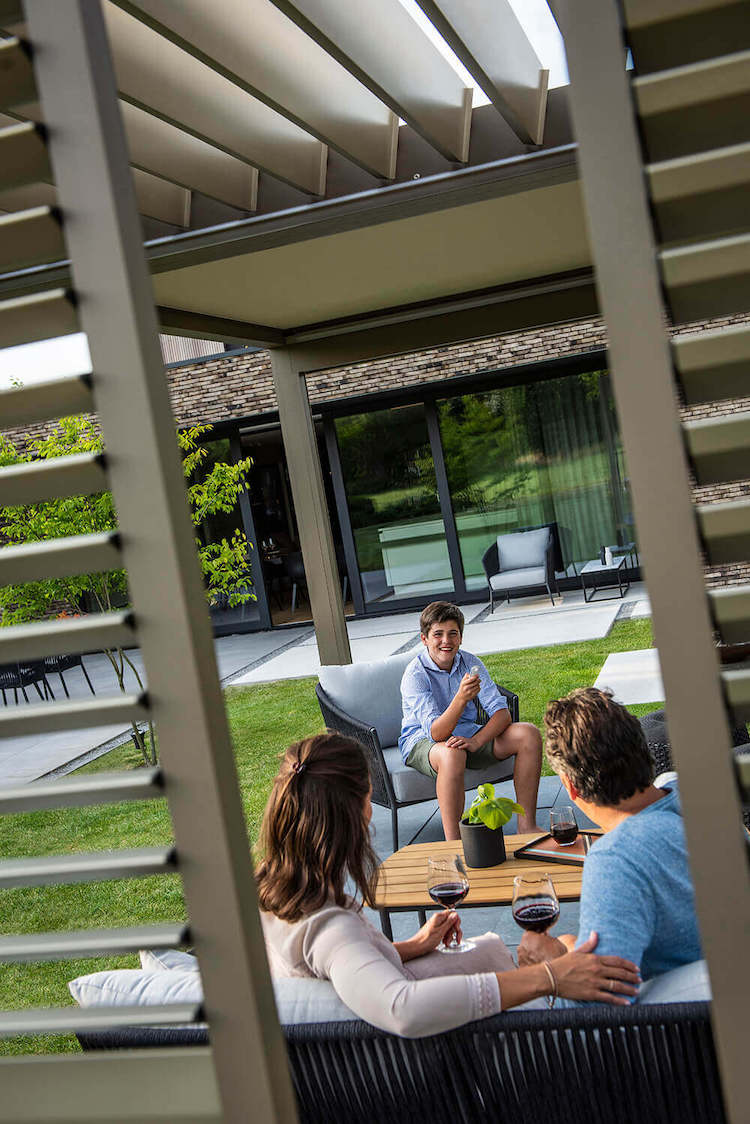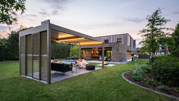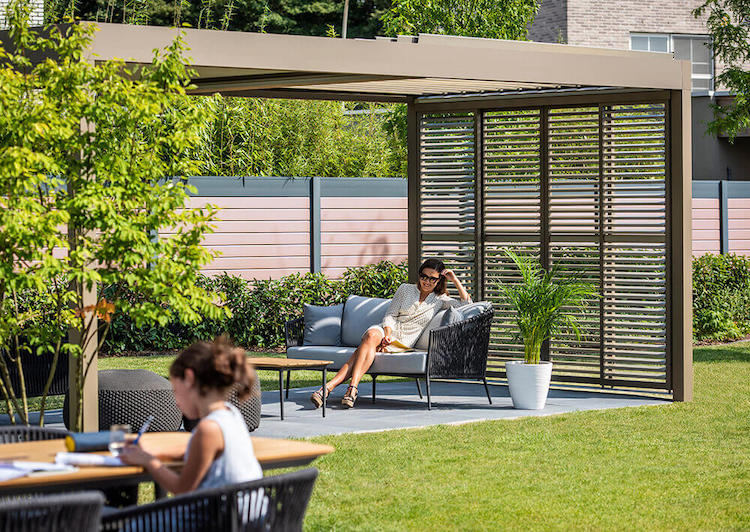 Zem pergolas ar fiksētu jumtu Jūs vienmēr jutīsities aizsargāts. Tomēr ir iespējams izvēlēties arī papildu elementus, lai padarītu pergolu vēl noslēgtāku. Varat izvēlēties modernus bīdāmos paneļus, fiksētu horizontālu alumīnija žalūziju sienu vai pat stikla bīdāmo sienu, lai nezaudētu redzamību uz savu dārzu vai pagalmu. Padariet to pilnīgu ar Fixscreen saules ēnojumu, lai izvairītos no saules stariem, vai izvēlieties LED apgaismojumu, lai varētu baudīt pergolas priekšrocības arī naktī.