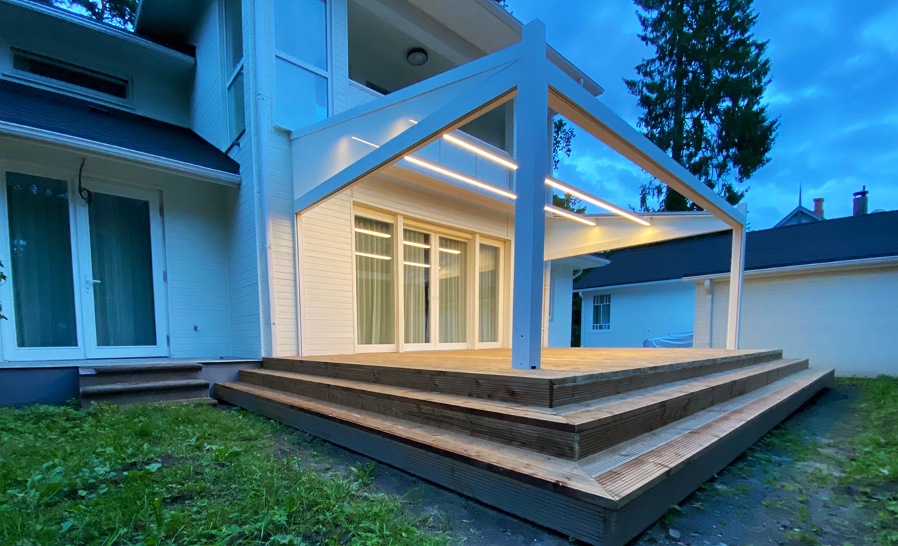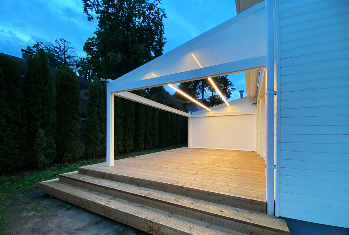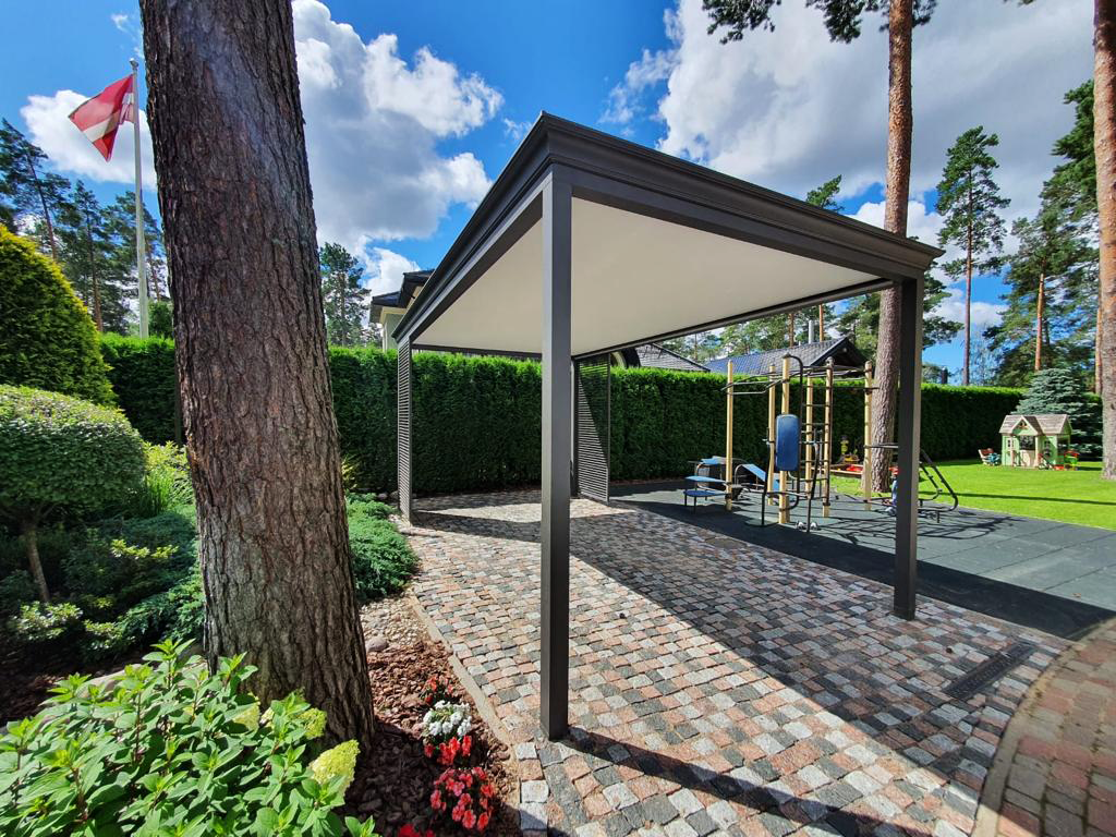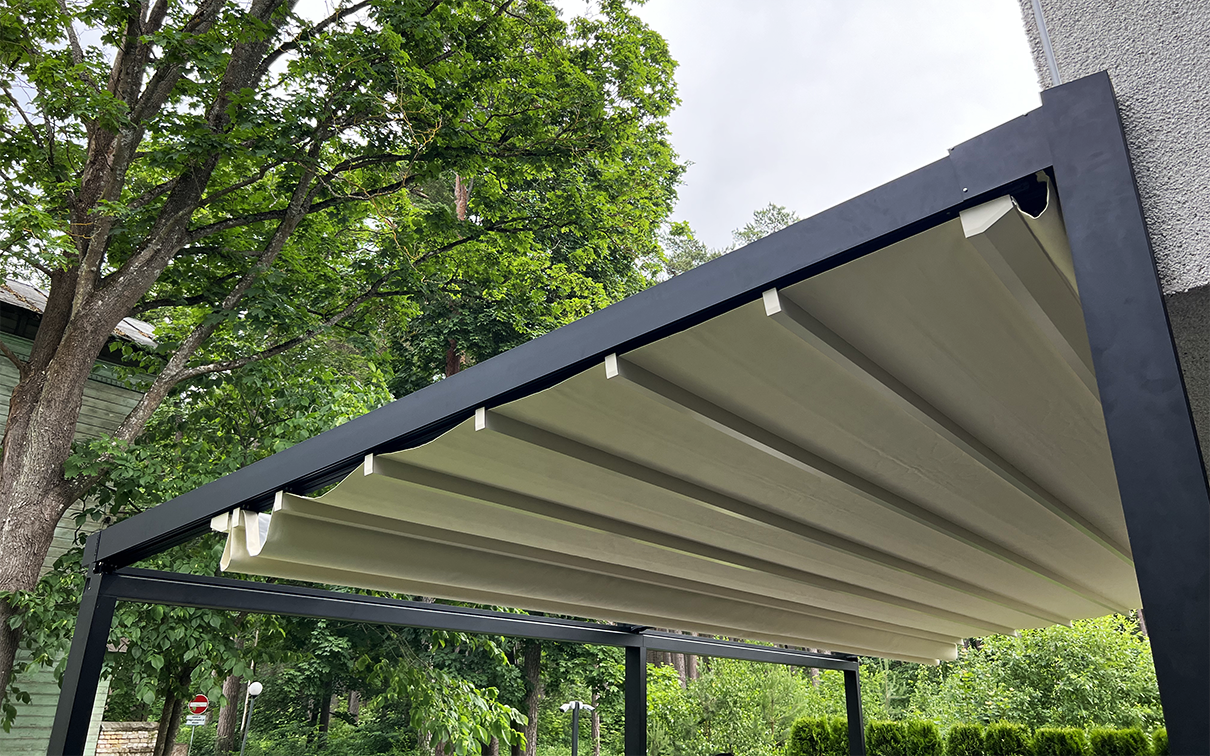 • Auduma jumta pergolas