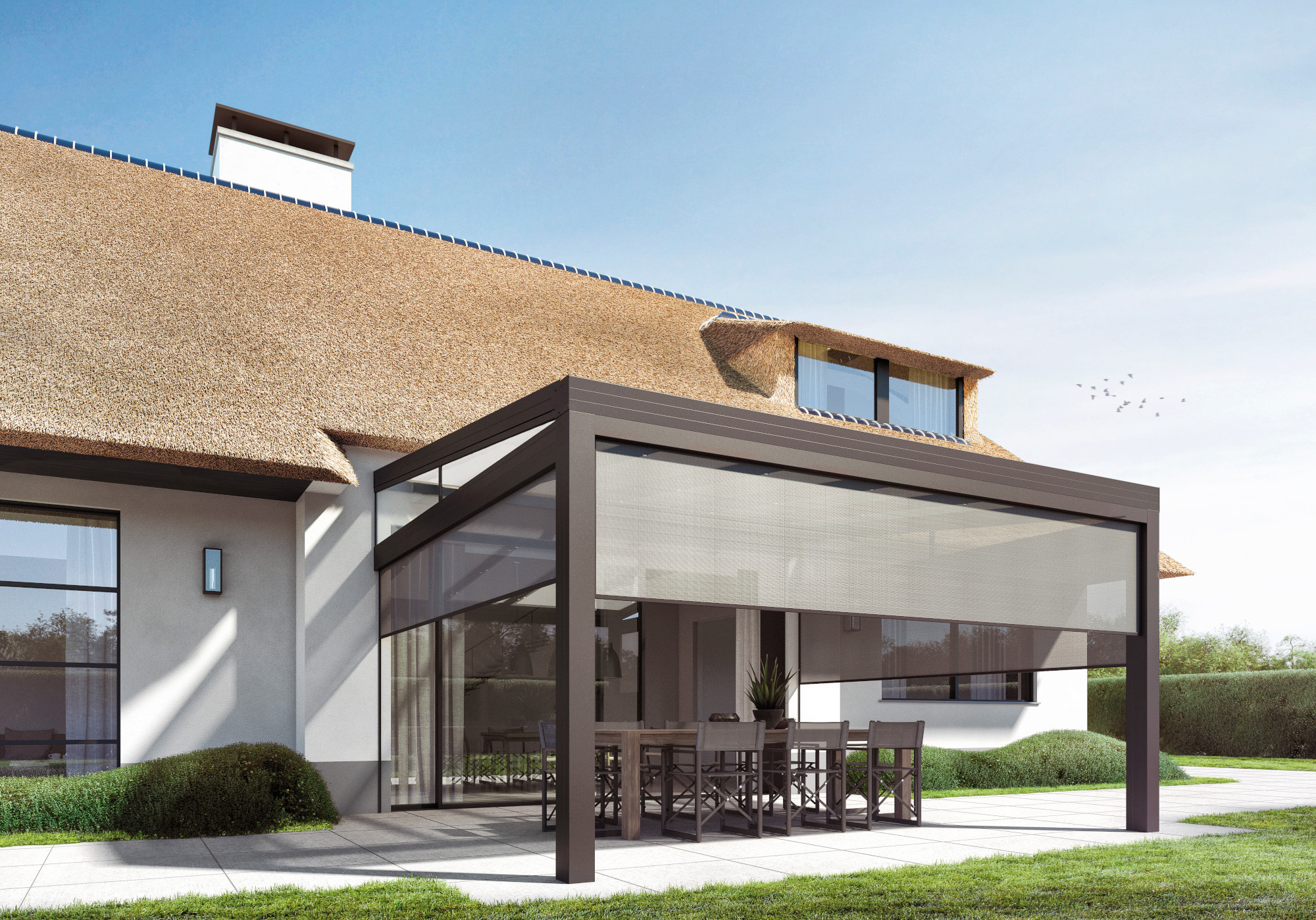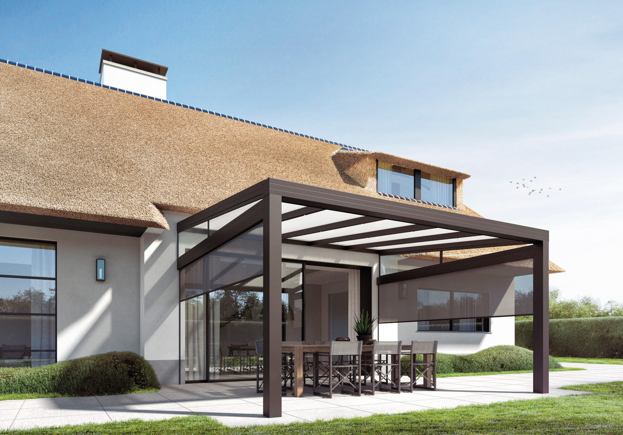 Ar GXLX notekas integrāciju, Climalux Horizon ir ne tikai vizuāli pievilcīgs, bet arī pašnesošs. Jumta garums var sasniegt līdz pat 5 metriem (atkarībā no sniega slodzes, dziļuma un stiklojuma). Jumta slīpums svārstās no 5° līdz 10° (standarta 8°), un tas ir piemērots stiklam (8 vai 10 mm) vai 16 mm vai 32 mm plastikāta slānim. Izvēlies Climalux Horizon, lai piešķirtu savai ārtelpai gan funkcionalitāti, gan stilu.