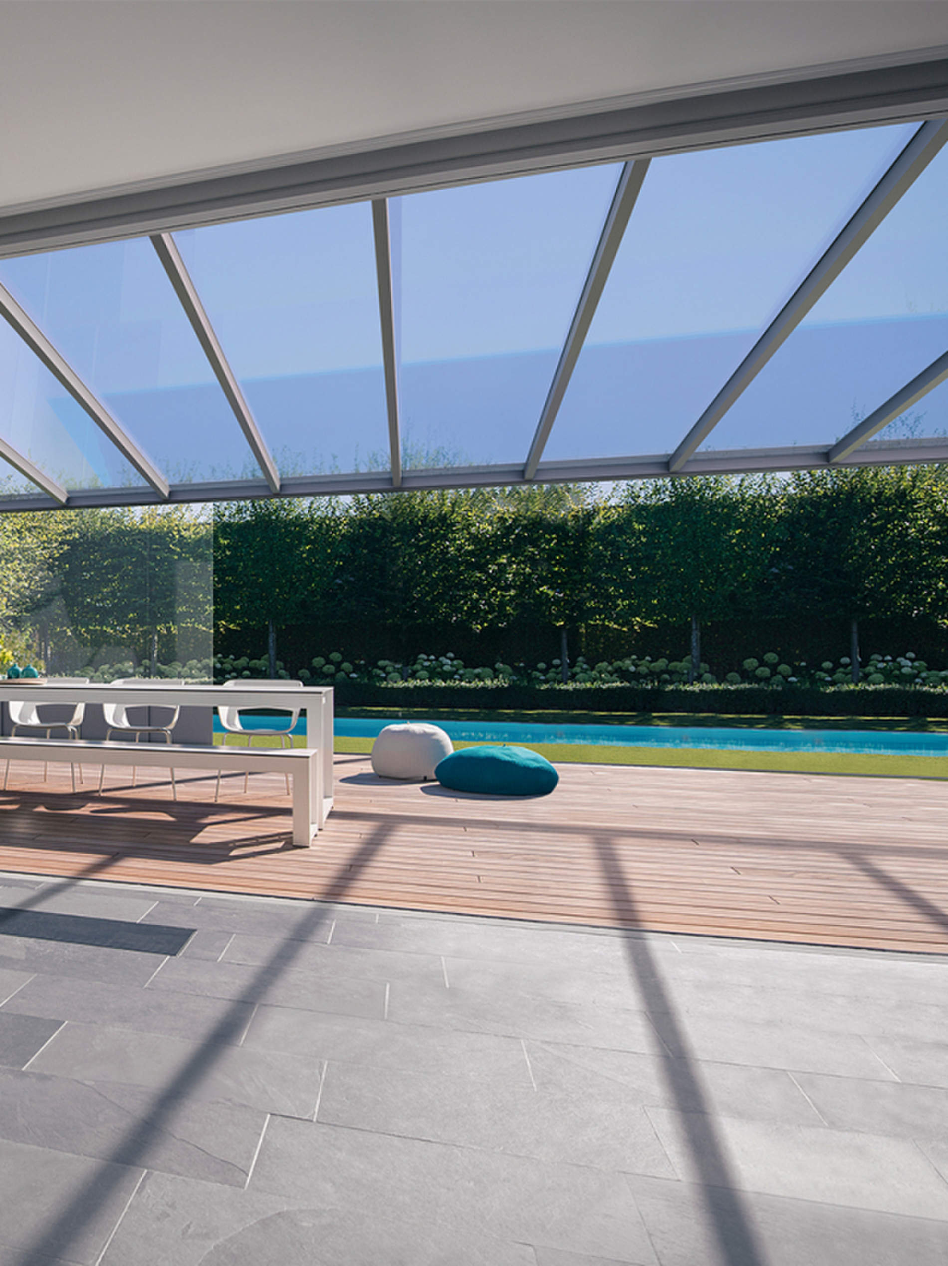 Climax Panorama piedāvā plašas iespējas terases jumtiem, verandām, lapenēm un ziemas dārziem. Šie pielāgojami jumti tiek izgatavoti pēc individuāliem izmēriem, piedāvājot ļoti īsus piegādes laikus.
