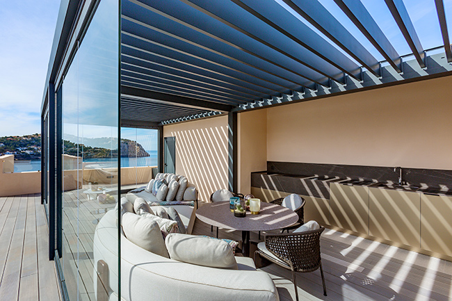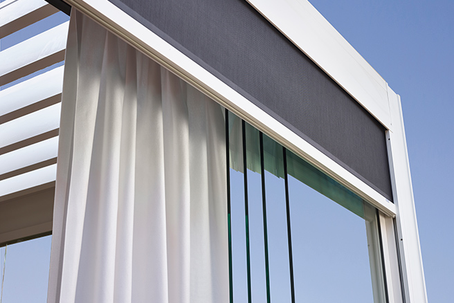 Stikla bīdāmie paneļi ir lielisks veids, kā āra telpai piešķirt papildu dimensiju. Turpiniet baudīt vēlu vakaru un neļaujiet sildītāju patīkamajam siltumam izplūst, vienlaikus saglabājot skatu uz savu dārzu. Arī kukaiņi vai vēja brāzmas jums netraucēs. Turklāt jūsu pergola ar stikla bīdāmajiem paneļiem var būt pilnībā aizslēgta, kas nozīmē, ka zagļiem nav nekādu izredžu. Aiz slēdzenes un atslēgas – un aiz 10 mm rūdīta stikla – jūsu dārza mēbeles un elementi būs drošībā.