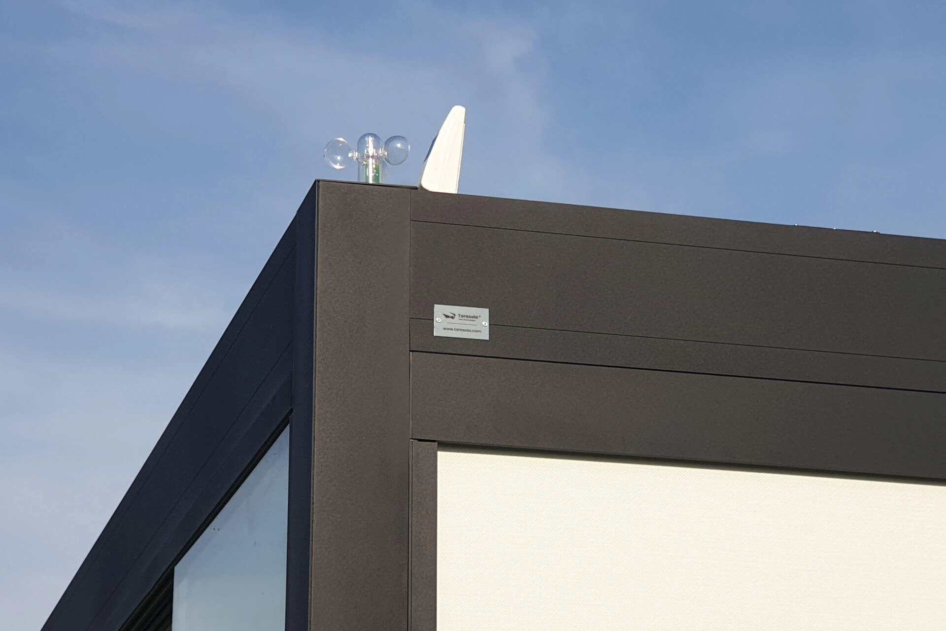 Laikapstākļu sensori nodrošina komfortu un drošību. Lietus, vēja un sniega sensori nelabvēlīgu apstākļu gadījumā nosūta signālu, lai jumts un/vai žalūzijas SCREEN automātiski aizvērtos, aizsargājot jūs, jūsu tuviniekus, mēbeles, ziedus un citus terases piederumus. Tarasola, kas aprīkota ar laikapstākļu sensoriem, ir inteliģenta tehnoloģija, kas reaģē uz mainīgajiem laikapstākļiem.
