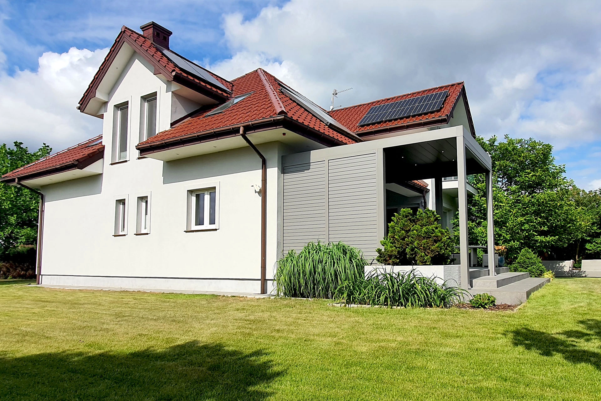 Slēģi ir izgatavoti no alumīnija, bet, starp daudzām citām krāsām, tos var krāsot ar kokam līdzīgu apdari. Pateicoties tam, mēs iegūstam klasiska izskata koka elementu iespaidu, kas tomēr neprasa laikietilpīgu kopšanu kā tradicionālajiem koka elementiem.