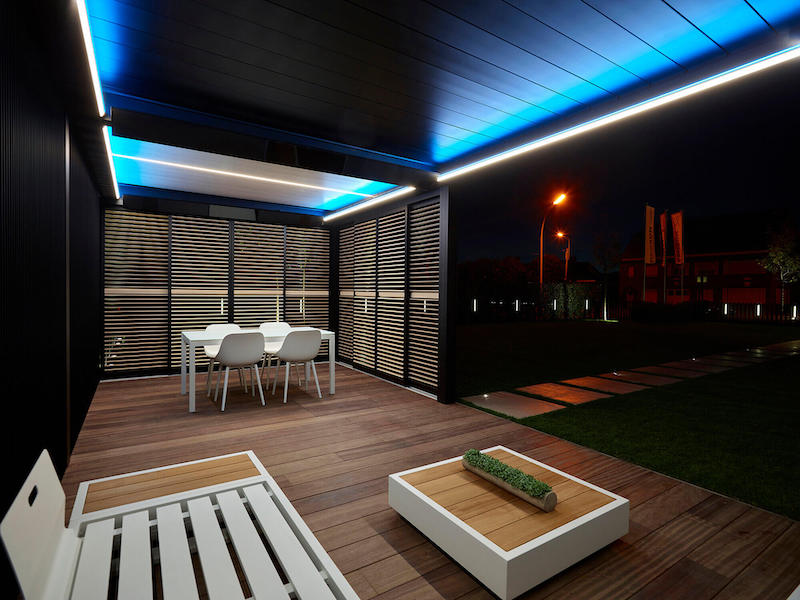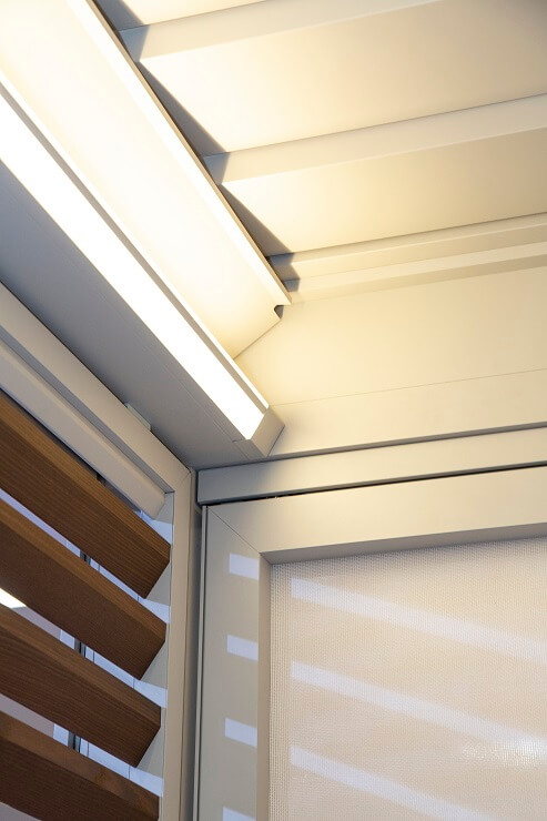 UpDown LED gaismas jūsu pergolai piešķir tūlītēju mājīgumu. Gaismas diodes ir uzstādītas jumta rāmja iekšējā pusē. Varat izvēlēties uz augšu vērstu, netiešu apgaismojumu vai uz leju vērstu tiešu apgaismojumu. Varat arī izveidot unikālu to kombināciju. Ideāli piemērots ikvienam, kurš vēlas radīt patīkamu noskaņu un tajā pašā laikā lasīt savu iecienītāko žurnālu vai grāmatu.