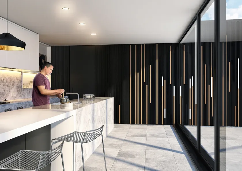 Vai zinājāt, ka mūsu fasādes apšuvums ir lieliski piemērots arī iekšējām sienām? Tas nemanāmi sajaucas kā iekštelpās, tā arī ārā, tādējādi paplašinot telpas sajūtu.